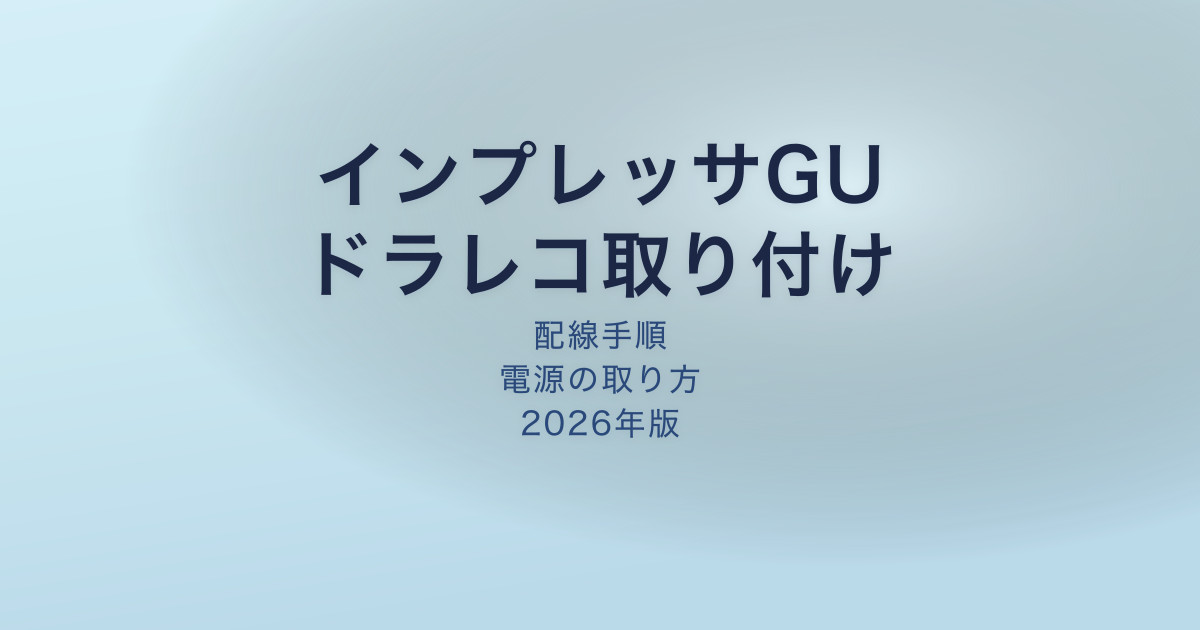 インプレッサGU(GK/GT系含む)にドライブレコーダーを取り付ける際、最も注意すべきはアイサイトのステレオカメラ周辺の禁止エリアです。この記事では、禁止エリアの正確な位置から電源の取り方、フロント・リア配線の取り回しまで、手順を5ステップで解説します。作業前に工具と部材を揃えておけば、初めてのDIYでも2時間以内に完了できます。