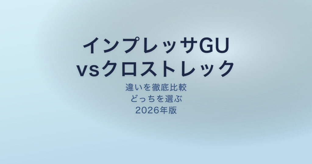 更新日:2026年4月 ※当サイトはAmazonアソシエイト・プログラムの参加者です。リンクを通じて購入された場合、当サイトに紹介料が支払われることがあります。 結論:街乗り中心ならインプレッサ、アウトドアも視野に入れるならクロストレック 結論通勤・街... -