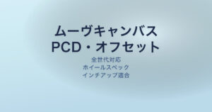 ムーヴキャンバスのホイール基本スペックはPCD100、4穴、インセット+45前後です。購入前にこの数値との適合を確認してください。サイズが合わないとハブに取り付けできません。